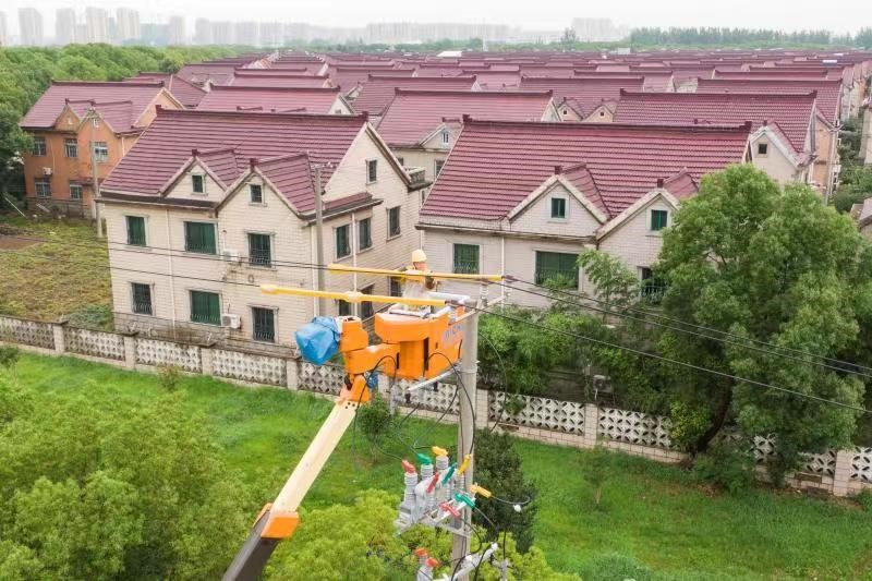 6月26日,在上海市嘉定区安亭镇星明村内,带电作业人员顺利完成最后一组带电搭接引线工作,送电条件全部具足,随后操作人员逐一对星明村四路新增线路合闸送电,为新农村建设提供充沛的电力,点亮和美乡村的宜居宜业梦。