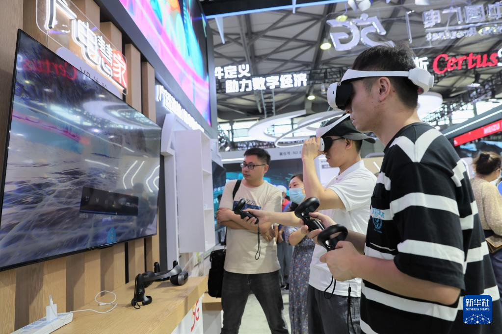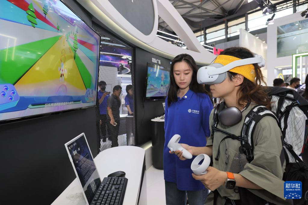 6月28日,人们在中国移动展台佩戴VR智能眼镜进行体验。