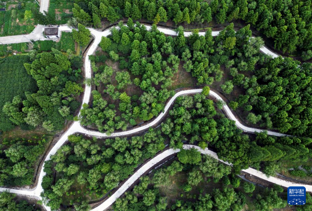 8月3日拍摄的东厍村水源涵养林里的休闲步道(无人机照片)。