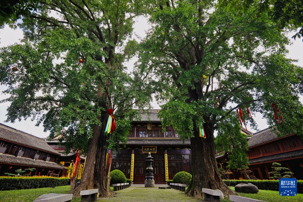 8月3日拍摄的东厍村庄严寺的两棵古银杏树。