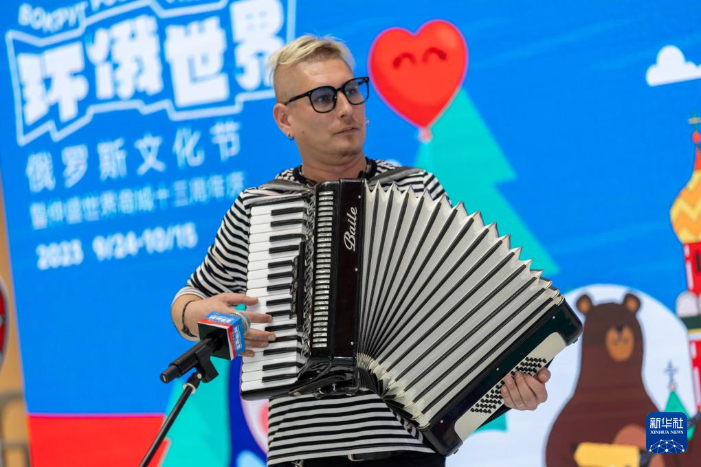 9月24日,俄罗斯手风琴演奏者现场演奏。