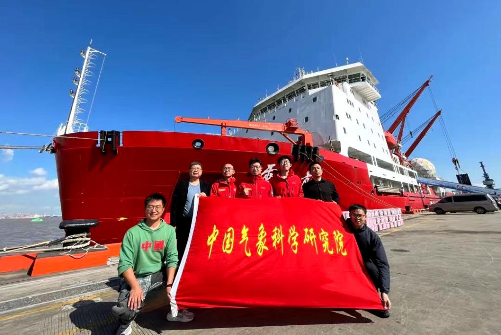 11月1日,中国气象科学研究院南极考察队员出征前在码头留影。(受访者供图)