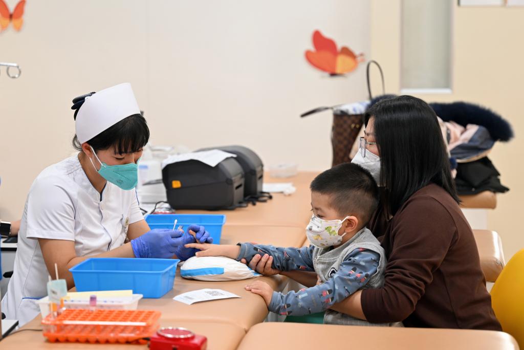 11月24日,在吉林大学第二医院儿科门诊,护士为患儿采血。(受访对象供图)