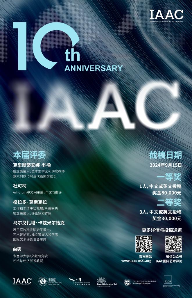 据悉,国际艺术评论奖通过IAAC官网(www.iaac-m21.com)接受中文和英文评论作品,其使命是通过对当代艺术展览进行更高质量的批评,鼓励和发展更好的文化环境。