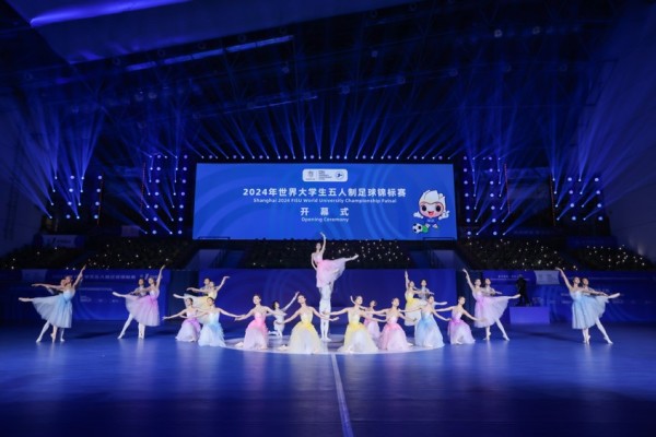 上海各高校的大学生为开幕式带来了精彩的文艺表演。《追寻》《逐光》《圆梦》三个篇章,彰显古今文化传承,呈现中西文明互鉴,体现了世界大学生五人制足球锦标赛包容并蓄、开放融合的属性,也呈现了大学生追逐梦想的朝气与活力。