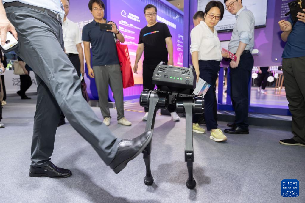 7月4日在2024世界人工智能大会拍摄的傲鲨智能机器人。