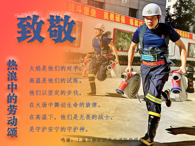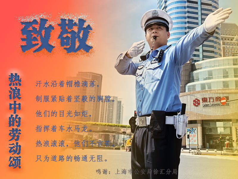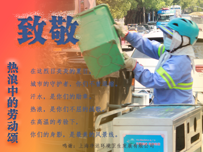 新华网上海7月10日电(许超、实习生卢旭阳)骄阳似火,汗水是你们辛勤劳动的见证;热浪滚滚,坚守岗位是你们对责任的承诺;微风拂面,是社会对你们默默付出的敬意。在这个炎热的季节,让我们向那些在高温下坚守岗位的最美劳动者们致以崇高的敬意:你们辛苦了,愿夏日的凉风带与你们的舒适与安宁。