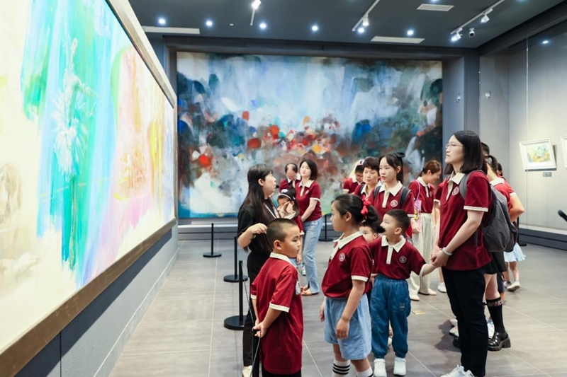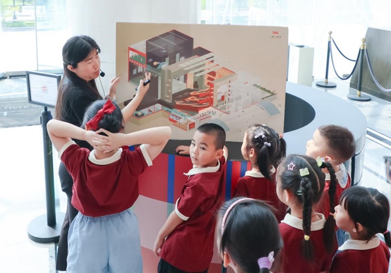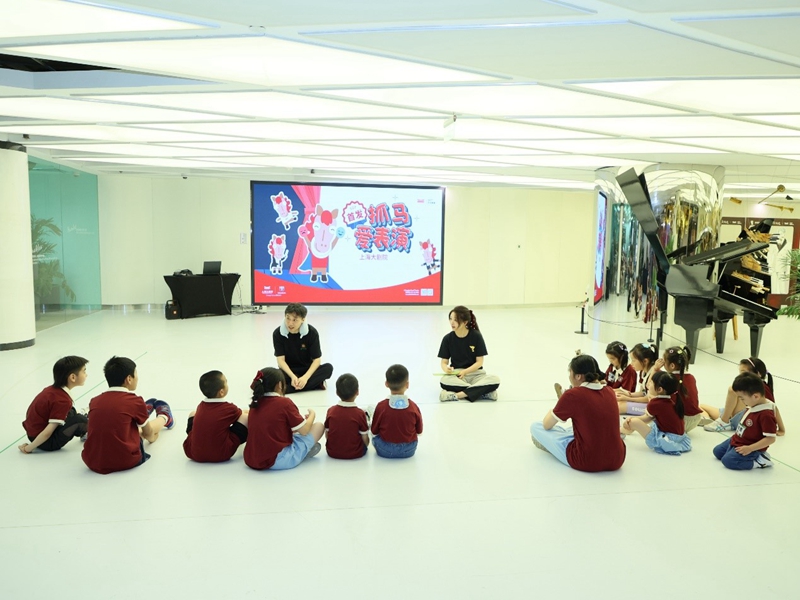 8月11日上午,国务学院邀请近20组亲子家庭来到上海大剧院,用100分钟的时间徜徉大堂、大剧场、贵宾室、后台化妆间、艺术藏品馆、A+艺术空间等多个剧院空间,聆听这座剧院的设计构思和建设历程,近距离观察舞台和观众席,解密舞台背后的高科技,寻觅著名艺术家的足迹和了解经典艺术作品。每个环节都展现了艺术与科技的交融之美,给孩子们带来了身临其境的“艺术初体验”。