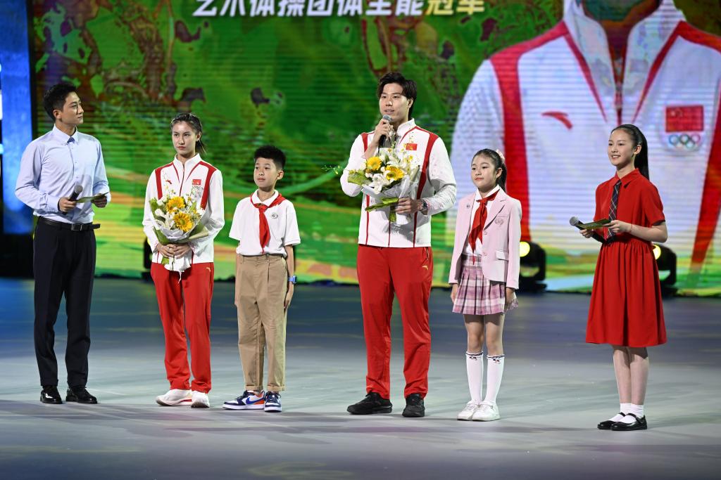 奥运冠军覃海洋和郭崎琪也来到开幕式现场,为学生运动员献上祝福和鼓励,并与上海市各级各类赛事中的记录保持者代表亲切互动。开幕式上还进行了《青春有我》校园体育文化串烧展示等活动。