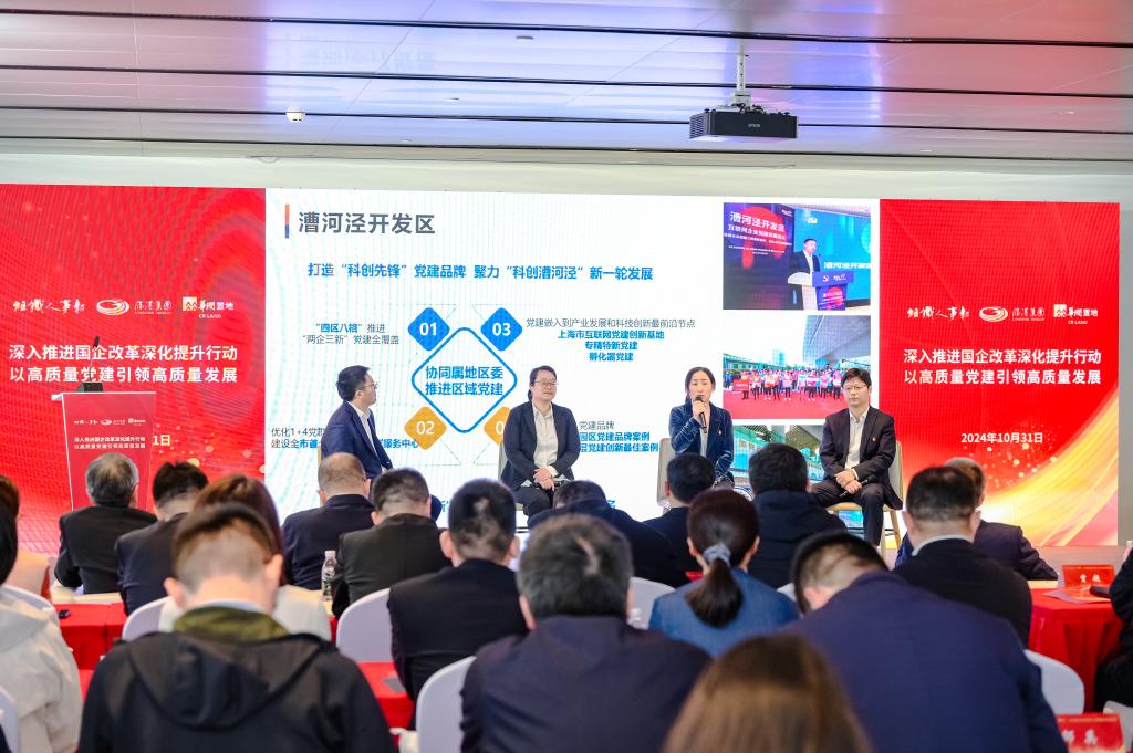 交流活动上,来自上海交易集团、华谊集团、隧道股份、光明城市服务集团,华润置地上海、苏州、合肥公司,临港集团漕河泾开发区总公司、临港联合公司,以及临港新片区党建服务中心的代表,分别围绕“深化国企改革”“长三角一体化发展”“新质生产力发展”等三个分主题,分享各自以高质量党建引领高质量发展的探索实践,来自中国浦东干部学院的专家作点评。