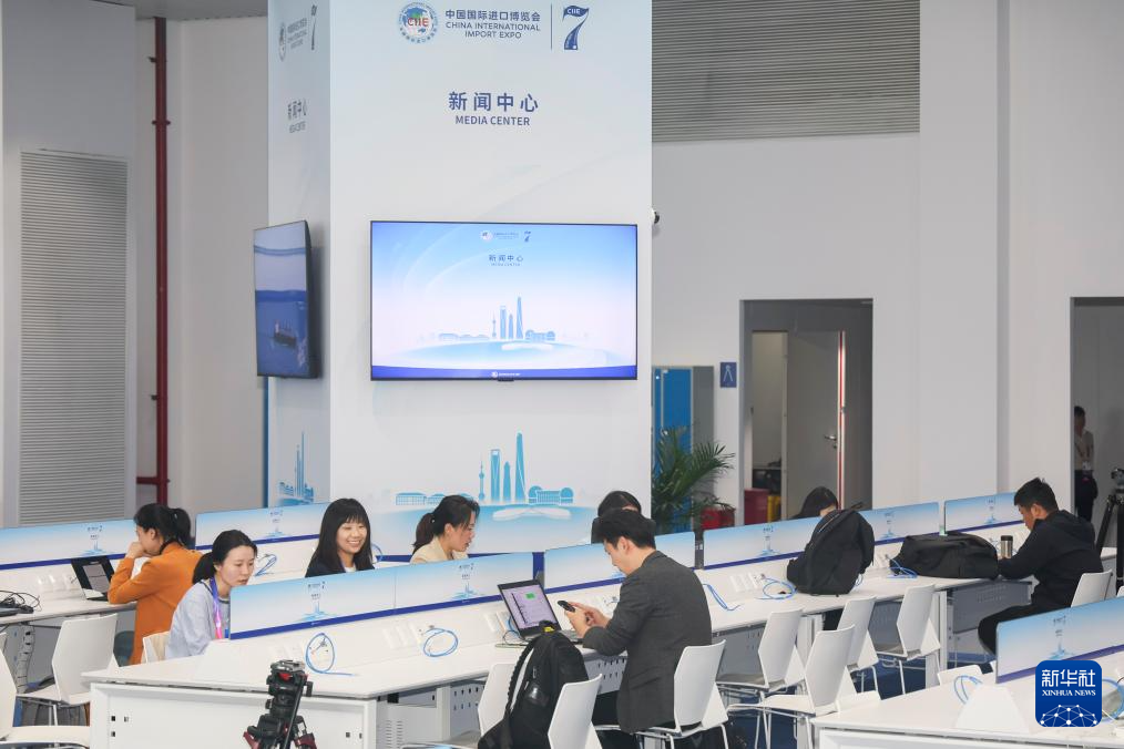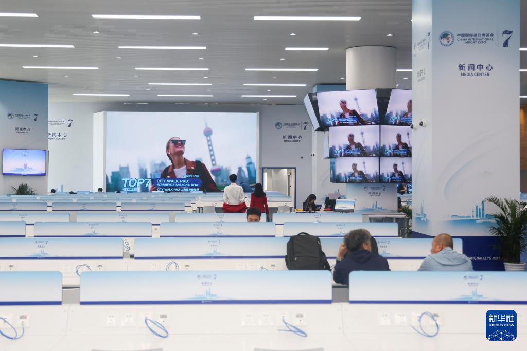 当日,设置在国家会展中心(上海)的第七届进博会新闻中心对中外媒体记者开放。