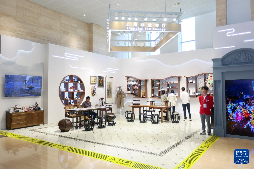 11月3日拍摄的第七届进博会新闻中心内的上海非遗客厅。