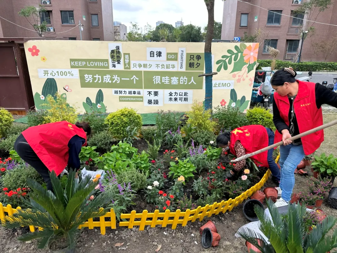 党员骨干最先站了出来,精心策划项目方案,招募彩绘、护绿、整修、管理等志愿团队,并带头翻新土地、铺设轮胎。业委会携手物业开展地面硬化平整工程,合力把建筑垃圾堆放处的墙体砌高、粉刷。彩绘团队在墙面上画下充满创意和美感的图案,把一个个废旧轮胎刷成色彩斑斓的装饰品。护绿团队在中心广场种下一簇簇充满生机的绿植,用围栏摆出各种不同的造型,还有亲子家庭参与了认领活动;镇职能部门为小区更新了垃圾厢房,配备了洗手池。文艺团队结合小区特色,创作了“环保打卡墙”,在潜移默化中把积极向上的生活态度和环保理念送入居民们的心中。在小朋友们的提议下,一个个温馨路牌出现在了花园中。管理团队定期开展值守、巡查和维护工作,确保项目成果的完好及长效。