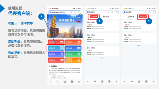 通过智慧人大活动发布功能,为代表知晓并参与履职活动提供了“智选餐”。代表可以通过平台及时接收各类履职活动信息,方便提前了解并报名参与履职活动。顾文婷代表表示:“以前参与履职活动还得通过各类通知填写各种报名表格,现在有了智慧人大平台,一切都变得方便快捷了。我们可以及时查收活动信息,选择自己感兴趣或专业领域相关的履职活动。”这一功能不仅提高了代表参与履职的参与度,提升了人大代表的履职质效。