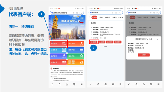 代表张志泉表示:“智慧人大平台让我们能够更及时地了解到群众的诉求,也督促我们要更加积极地回应群众关切,切实履行好代表职责。”智慧人大平台充分发挥了人大代表“家、站、点”平台紧密联系群众的功能,将镇人大代表之家、社区人大代表联络站及居村人大代表联系点紧密相连,建立了线上“家站点”体系。这一创新举措打破了空间壁垒,实现了选民扫码预约代表,代表线上接待来访选民,构建了零距离、安全可靠的移动履职场景。同时,通过这种远程“心连心”“屏对屏”的多元履职场景,智慧人大平台畅通了选民与代表的沟通桥梁,即时反馈选民代表意见,帮助推动群众急难愁盼问题的妥善解决。