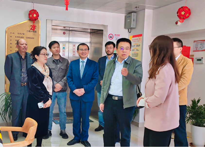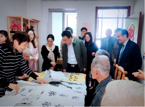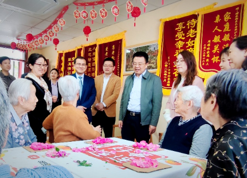 与会领导一行在曹镇长的带领下,参观高桥镇社区长者照护之家、日间照料中心,与社区长者们亲切交流,关心他们的生活需求和困难。