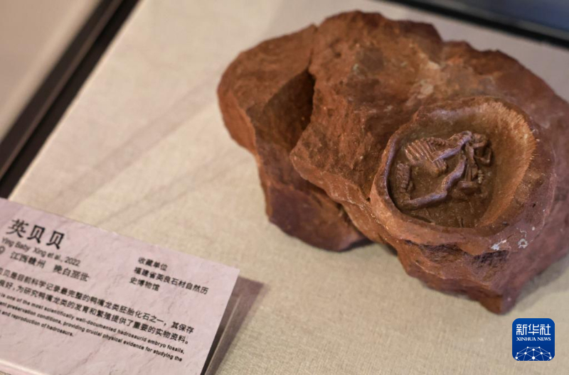 这是展出的英贝贝鸭嘴龙类胚胎化石(5月26日摄)。