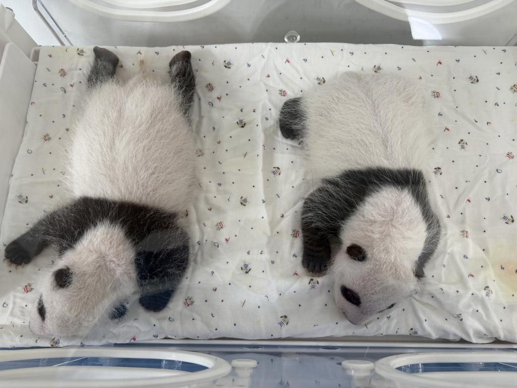 22日,上海野生动物园大熊猫“芊金”产下的龙凤胎幼崽满月。据保育员介绍,这对龙凤胎目前仍处于“吃睡循环”阶段,眼睛尚未睁开,预计还需十天左右才能首次“看世界”。