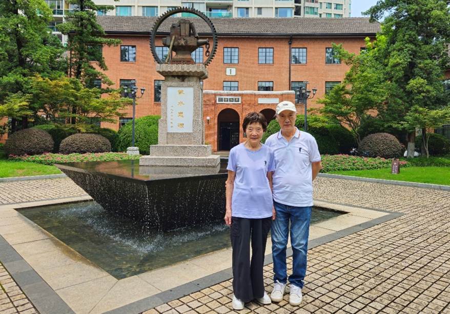 生活中,杨正余包揽家事,支持许峰专注科研直至退休;杨正余患癌后,许峰始终陪伴左右,用坚守诠释深情。如今虽已耄耋,杨正余仍坚持年年返校,在“饮水思源”碑前留影,将对母校的眷恋藏进每一次重逢。从徐汇校区老图书馆到闵行校区紫气东来门,从二人同窗到女儿追随脚步成为交大船海人,这份爱情与校情,已稳稳走过近六十载。
