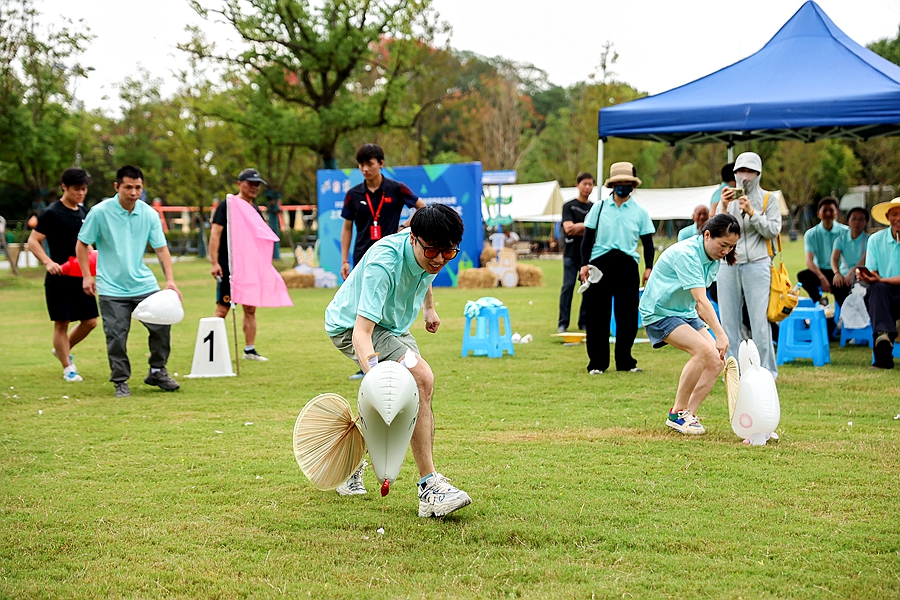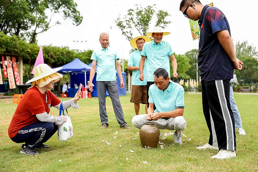 据介绍,此次赛事设计巧妙地将农事融入体育。随着开赛指令响起,“鱼乐人欢”“翻转乾坤”“抢种抢收”“小鸡快跑”四大农趣项目接连上演。赛场内外,来自上海各涉农区的10支代表队的120余名选手齐聚田园赛场,在农趣与竞技的交融中,展现新时代农民的健康风采与乡村生活的蓬勃生机。