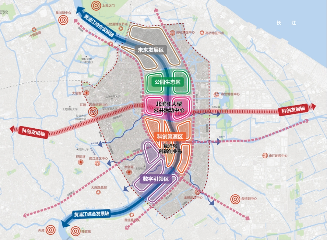 9月24日,《上海市黄浦江滨江中北段专项规划》公众参与草案对外公示,黄浦江两岸将协同构建“两轴、一心、四区”的发展结构,而“四区”将以复兴岛为核心,联动两岸形成科创策源区。