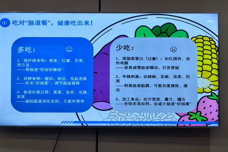 在食材选择上,俞旻皓建议应多摄入富含维生素A和K的深绿色叶菜和橙色蔬果,以保护肠粘膜;增加膳食纤维,维持肠道菌群平衡;补充富含Omega-3脂肪酸的深海鱼类和坚果,降低肠道炎症风险;蛋白质方面,优选白肉,减少红肉摄入,以降低结直肠癌风险。他强调,老年人还经常由于咀嚼功能下降、食欲减退、慢病多发等原因,日常饮食往往难以满足营养需求。必要时可补充医学营养品,确保营养摄入全面、吸收充分。