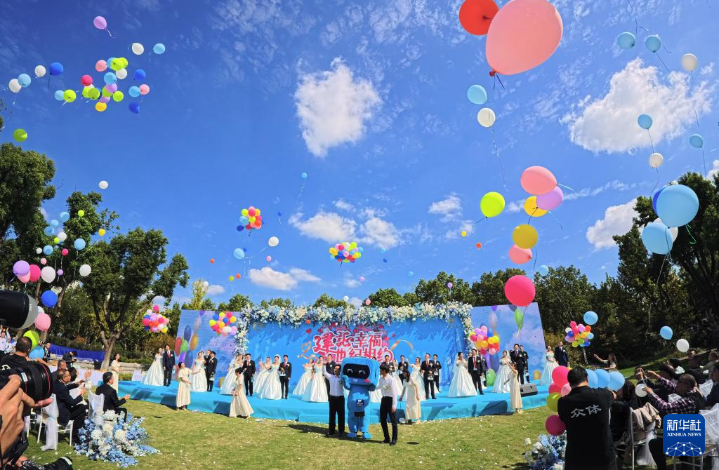 10月25日,“建证幸福 世纪相约”中建二局华东公司第三届集体婚礼在位于上海浦东新区的世纪公园举行。由城市建设者和他们的爱人组成的19对新人身着礼服,在亲朋和同事们的见证下,分享婚礼的幸福甜蜜。