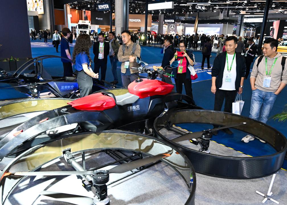11月5日在第八届进博会汽车及智慧出行展区拍摄的时的科技E20 eVTOL(电动垂直起降飞行器)。