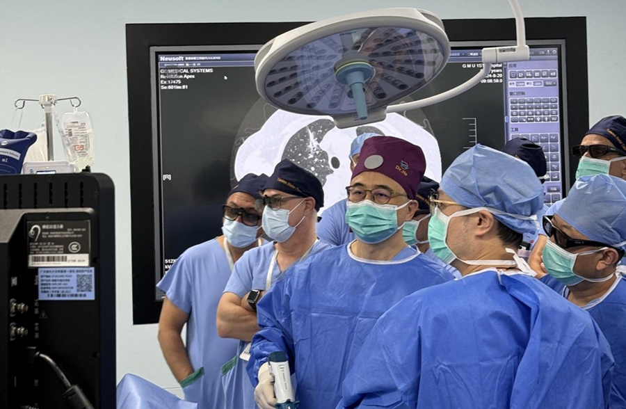 何建行教授团队进行无管微创手术。新华网 发(受访者供图)