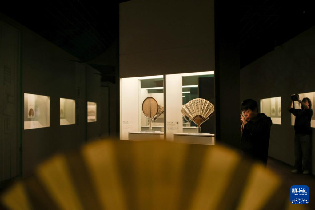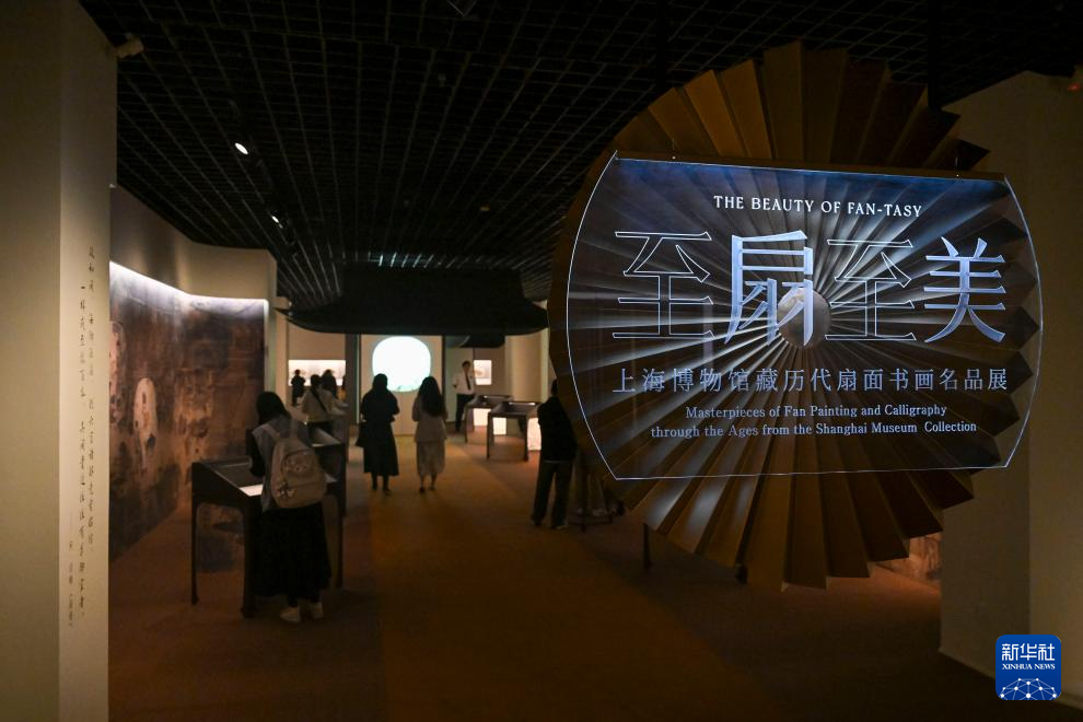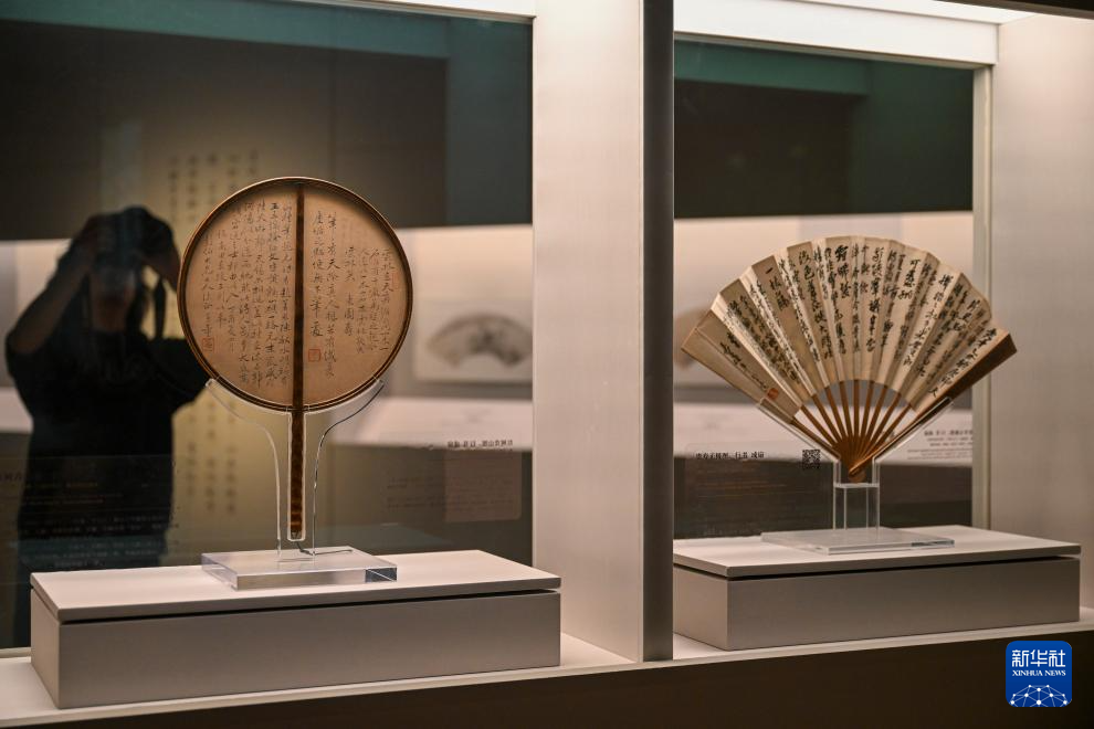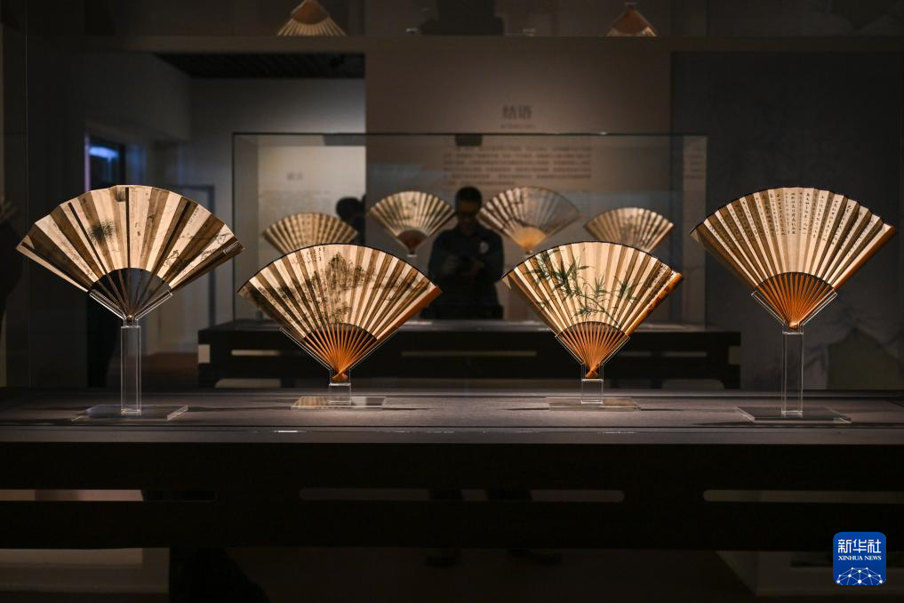这是11月13日拍摄的“至扇至美:上海博物馆藏历代扇面书画名品展”预展现场。