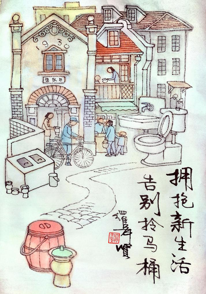 “拎马桶”曾是不少上海老城厢居民的民生痛点。由于部分老旧城区建筑在建造之初没有专门设计卫生间,人均居住面积狭小,居民只能手拎马桶去公共厕所倾倒。