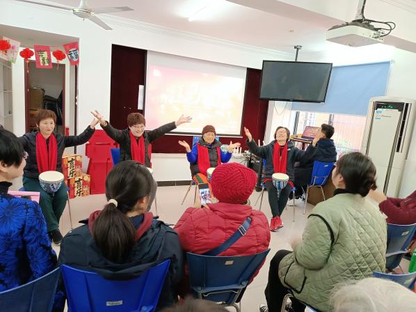 文艺汇演环节精彩纷呈,互动游戏“金曲猜猜猜”瞬间点燃了全场热情,两代人在旋律中穿梭时光。随后的才艺展示中,老年朋友们表演了动感十足的非洲鼓《2026马年大吉》,敲响了新年的节拍,歌曲《我们共产党人好比种子》、《绒花》让人对“老有所乐”印象深刻,京剧《红灯记选段闹工潮》和《码头工人志如钢》彰显了国粹底蕴;少年们弹唱起了《唯一》、《传奇》吉他曲目,合唱《你不知道的事》都将现代活力与经典情怀完美融合。
