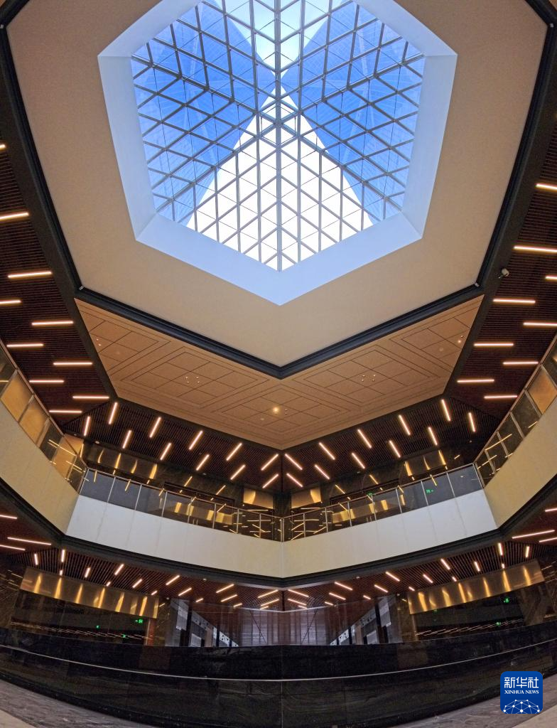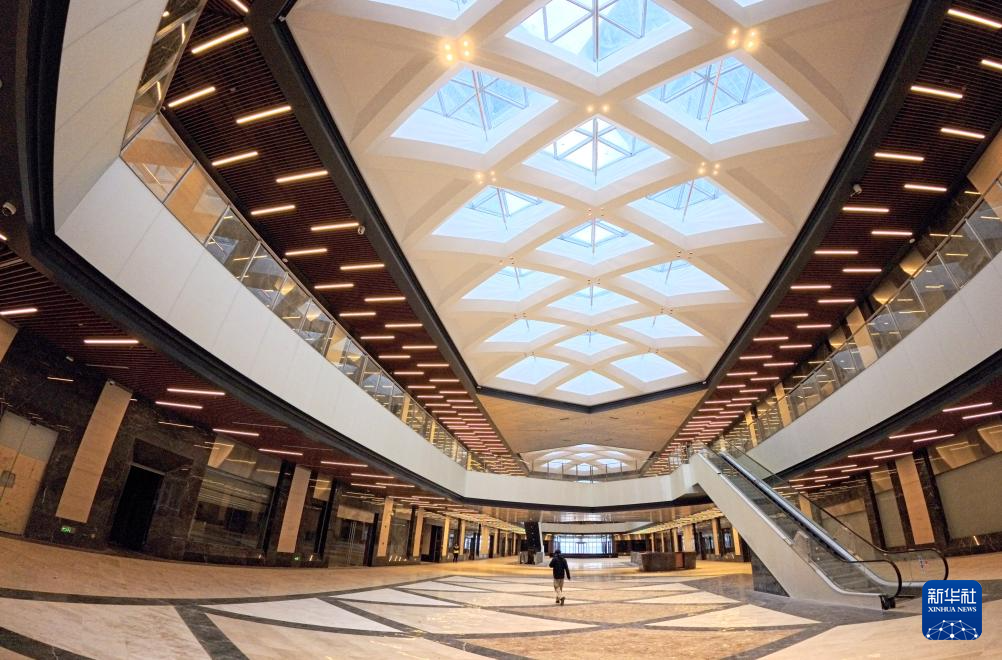 1月29日拍摄的中银金融中心裙楼中庭大堂内景。