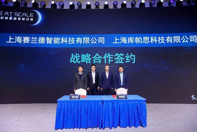 现场还举行了战略合作签约仪式,上海赛兰德智能科技有限公司分别与上海埃迪希科技服务有限公司、上海库帕思科技有限公司签署协议,围绕科研算力供给与数据价值挖掘开展深层合作。同时,玻尔+SciMaster科研智能体开发大赛获奖名单揭晓,大赛吸引44所顶尖高校、160余支队伍参赛,作品覆盖科研全流程。