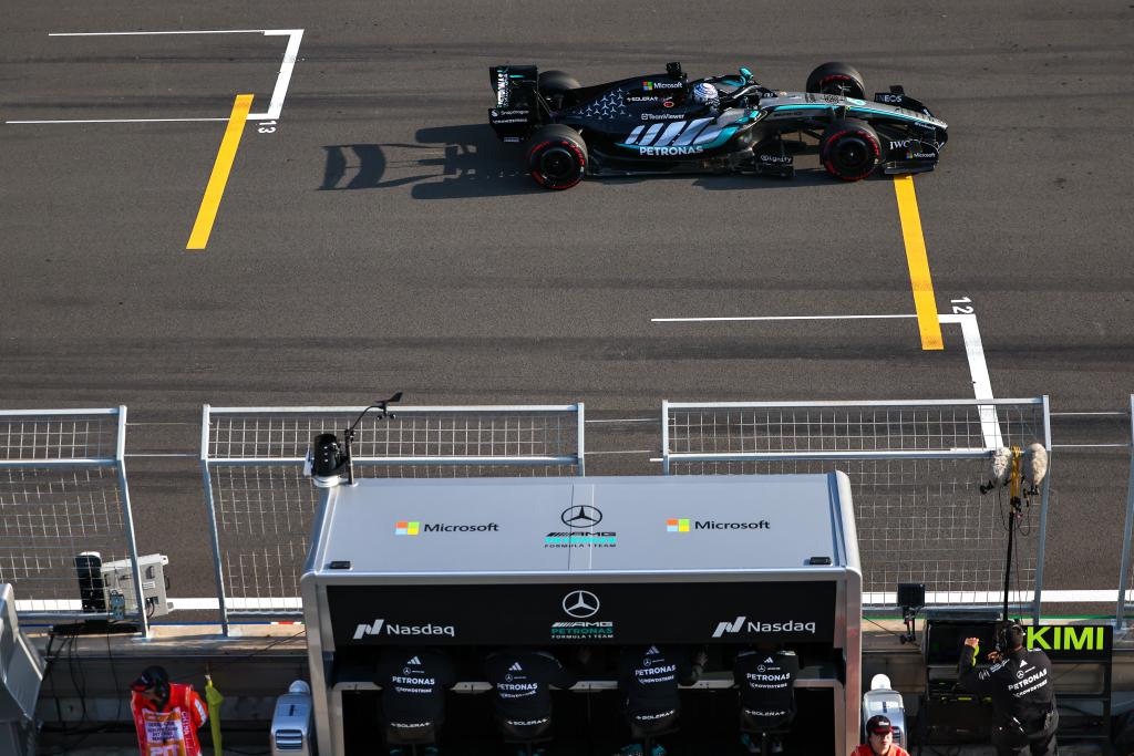 3月13日,梅赛德斯车队英国车手拉塞尔在比赛中。