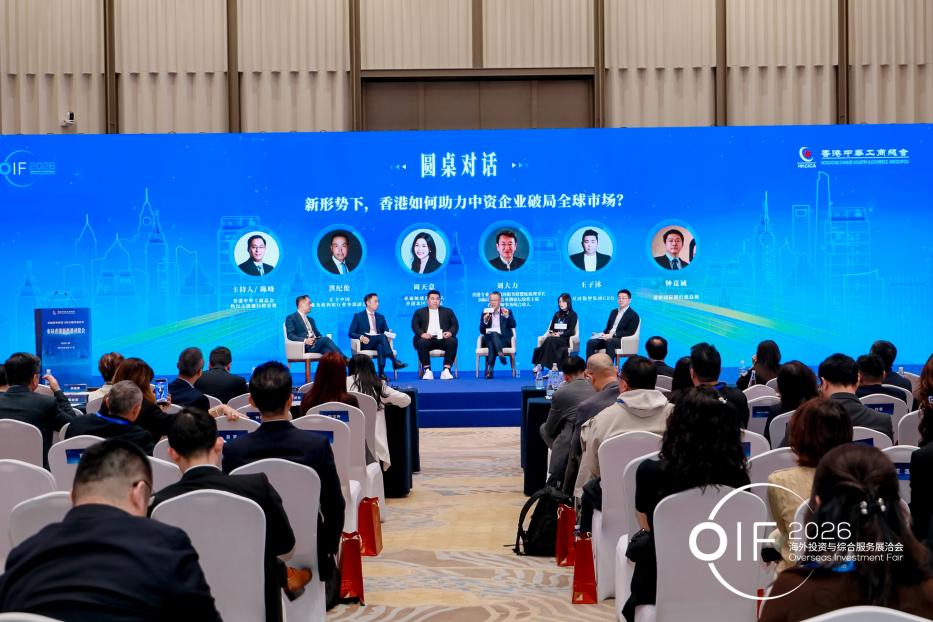 在题为“新形势下,香港如何助力中资企业破局全球市场?”的圆桌论坛上,香港中华工商总会执行主席兼行政总裁陈峰与汇丰银行中国副行长洪纪伦、浦银国际副行政总裁钟竟诚、香港北区区议会委任议员周天意、香港专业上市出海服务联盟轮值理事长刘大力、星河数智集团CEO王子沐等围绕金融支持、资本市场运作、国际合规、数智赋能等展开讨论。论坛共识认为,香港成熟的普通法体系、国际化的资本市场、丰富的专业服务人才,能够为中资企业应对全球市场风险、对接国际标准提供关键支撑。