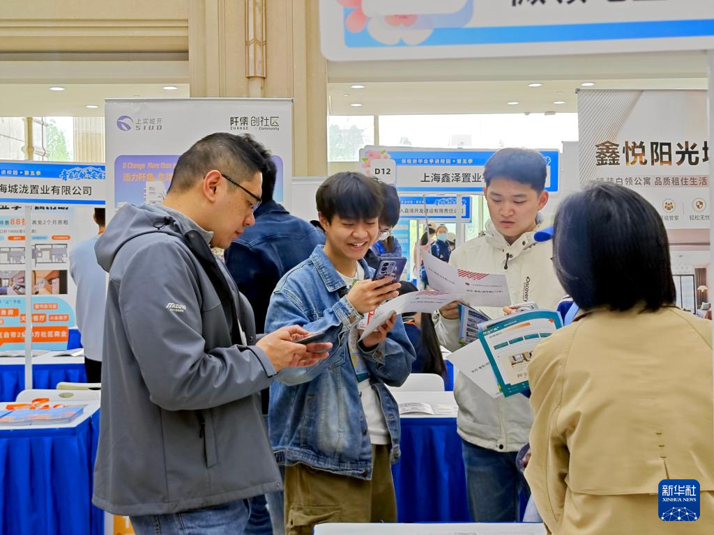 4月15日,在复旦大学举行的“保租房毕业季进校园”(第五季)首场活动现场,人们在了解房源信息。