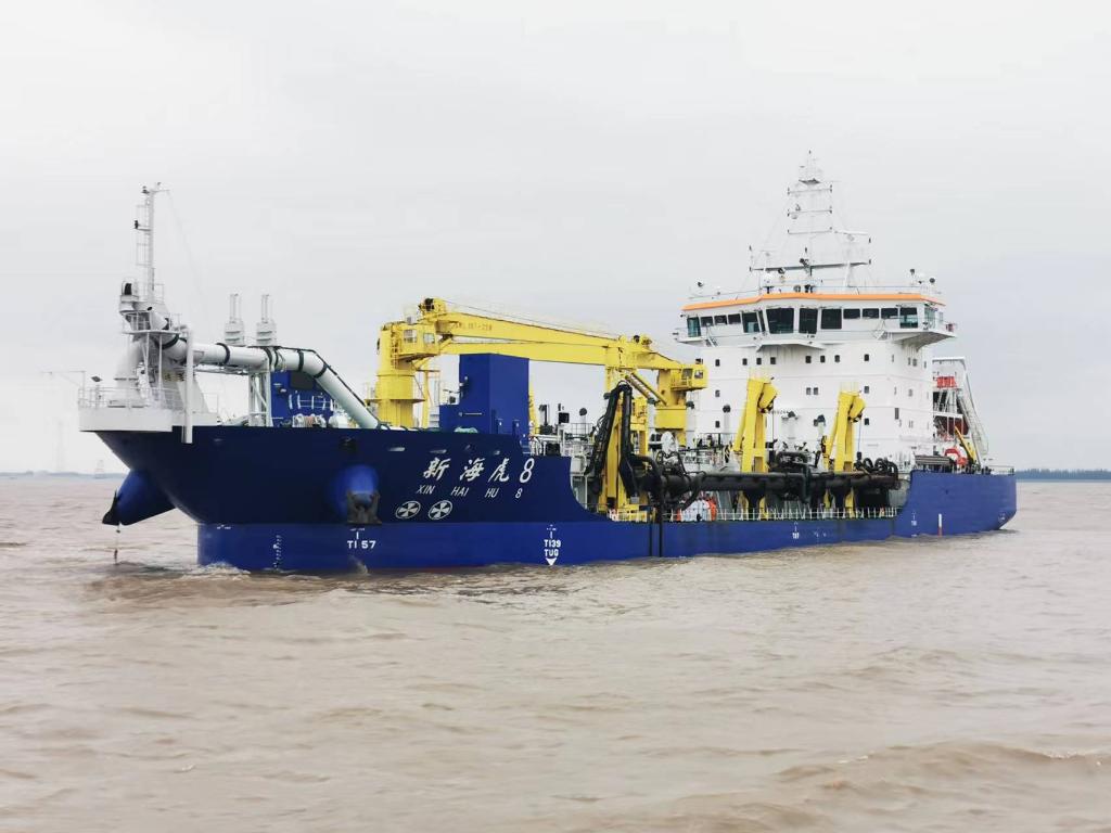 长江汇入东海的地方,是我国的水路交通枢纽和国际航运干线。每年5月,长江口深水航道进入洪淤季节,上游来沙量明显增多。中交集团所属上海航道局的“新海虎8”轮日夜守护着长江口的“黄金水道”,改善长江口航道流态,保障深水航道安全畅通。
