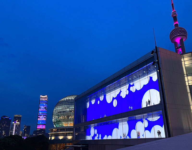 浦东美术馆点亮上海滨江夜色。新华网 沈梅摄