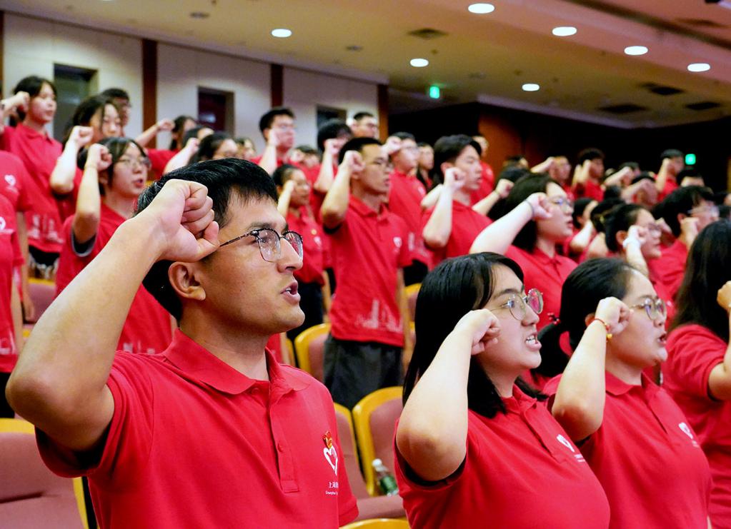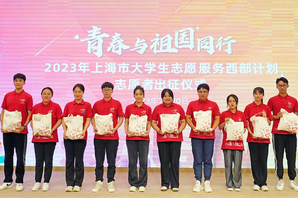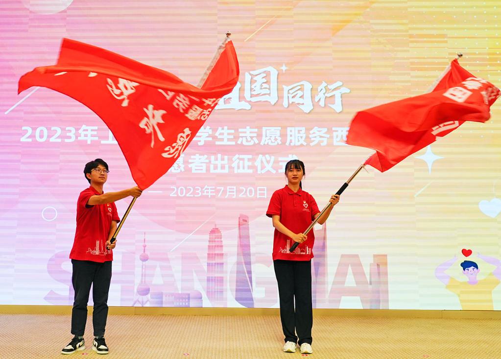 新华网上海7月21日电(刘颖、李心怡)7月20日,2023年上海市大学生志愿服务西部计划志愿者出征仪式在上海交通大学医学院举行。今年上海的148名西部计划志愿者将赴中西部基层进行1年至3年的志愿服务工作;143名研究生支教团志愿者将赴中西部各教学点位开展为期1年的教学服务工作。