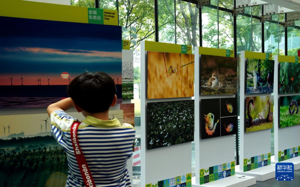 8月15日,观众在艺术节现场参观生态主题摄影作品。