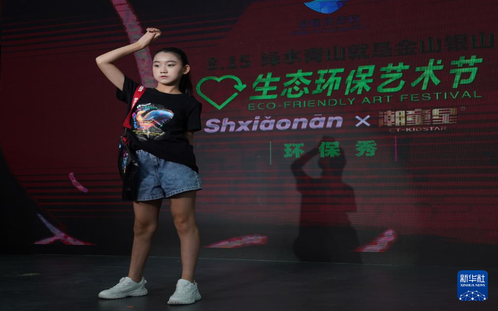 8月15日,小模特在艺术节开幕式上展示以海洋生物多样性保护为主题的服装。