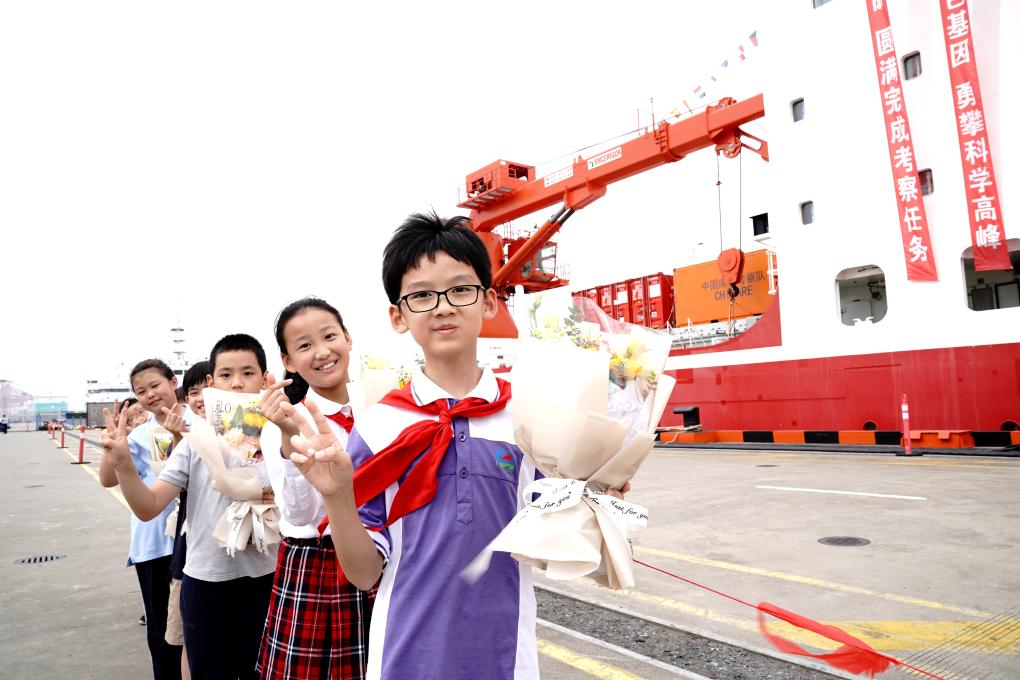 9月27日,小朋友们在码头欢迎中国第13次北冰洋科学考察队凯旋。