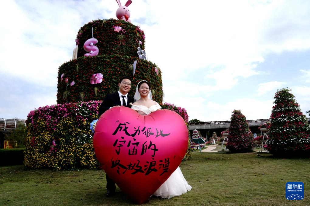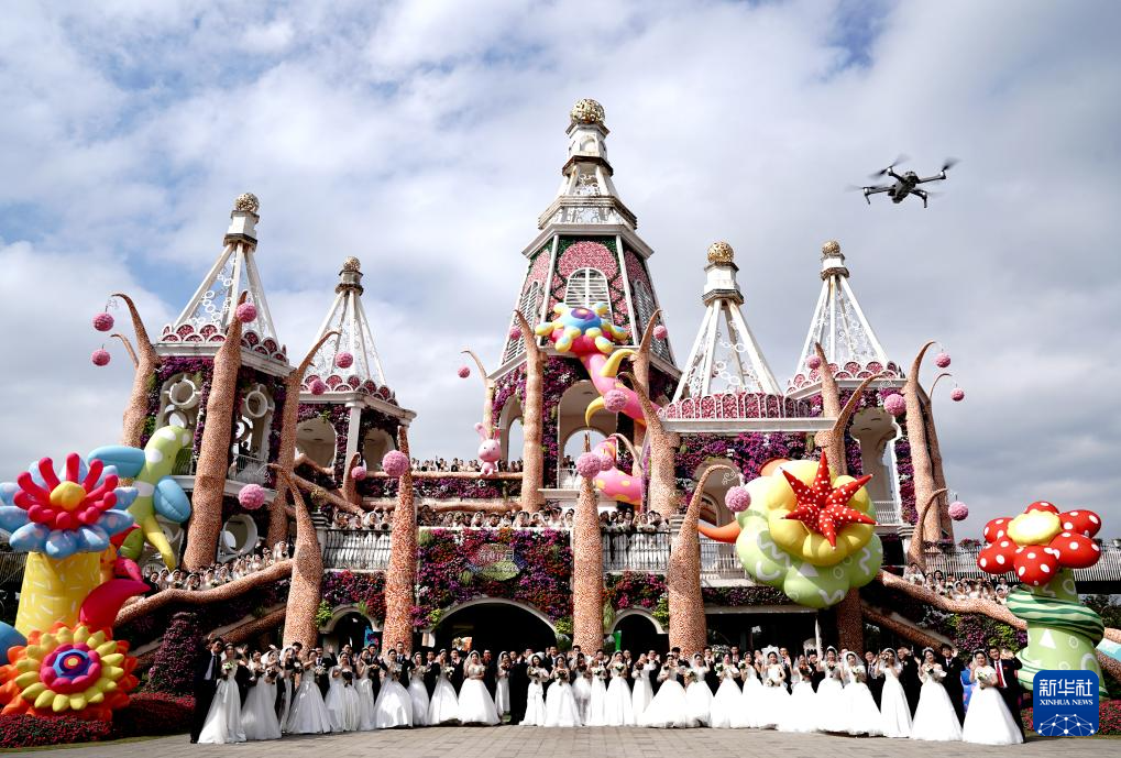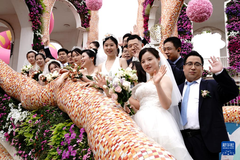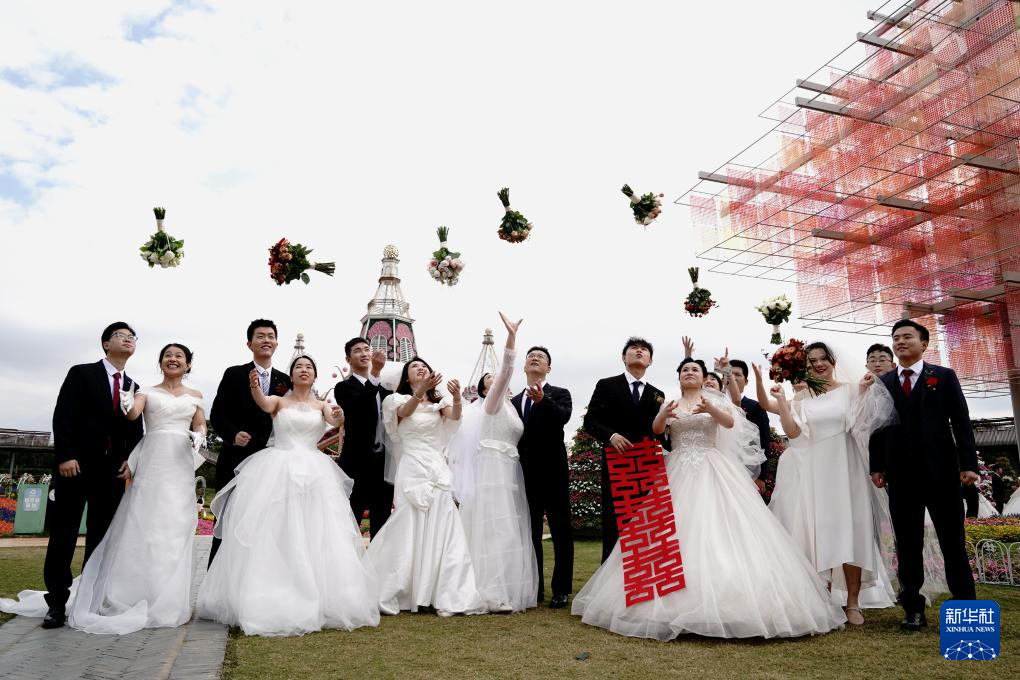 10月12日,航天新人在上海浦江郊野公园拍摄集体婚纱照。