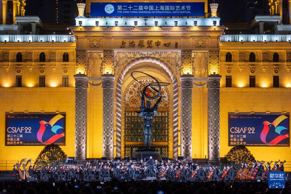 10月14日,第22届中国上海国际艺术节首场开幕演出在上海展览中心的喷水池广场举行。