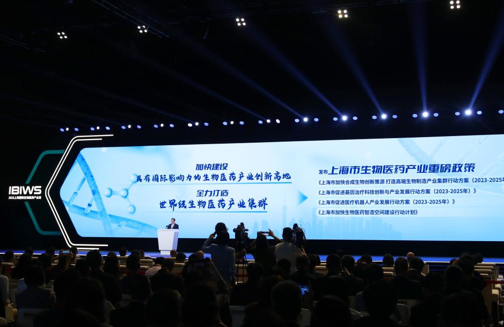 这是2023上海国际生物医药产业周开幕活动中举行的上海市生物医药产业重磅政策发布仪式(10月16日摄)。