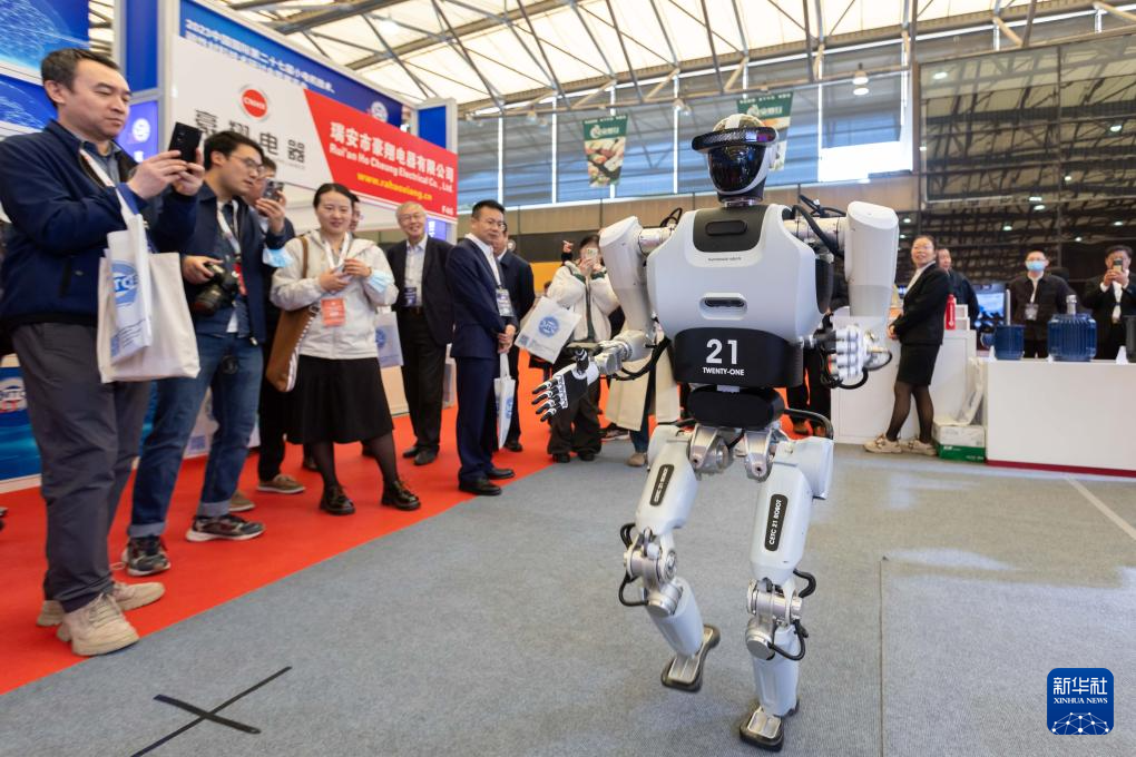 11月22日,中电科机器人有限公司研制的人形机器人现场演示。