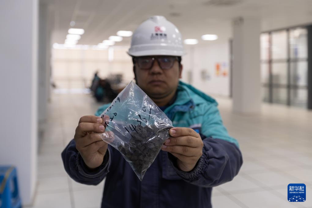 12月21日,上海城投水务(集团)有限公司工作人员展示经过处理后的泥样。