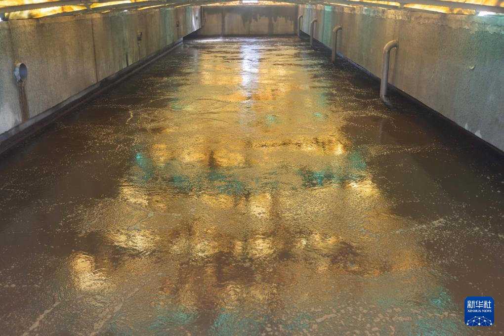 12月21日在竹园污水处理厂四期工程拍摄的生物反应池曝气系统。