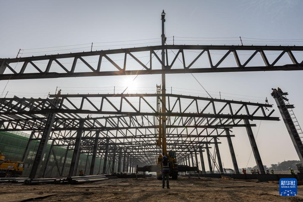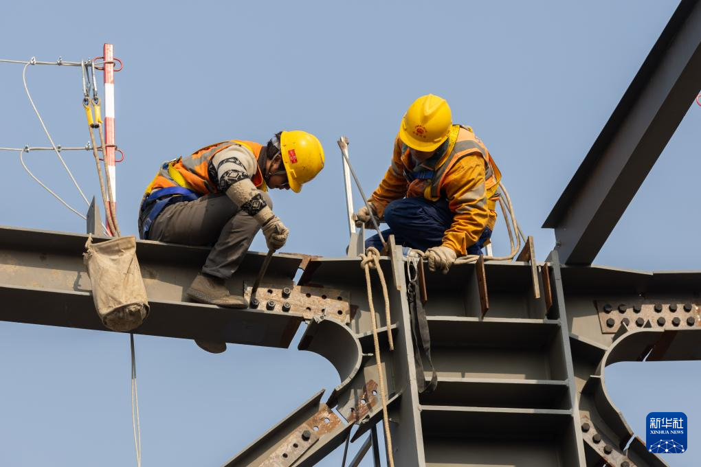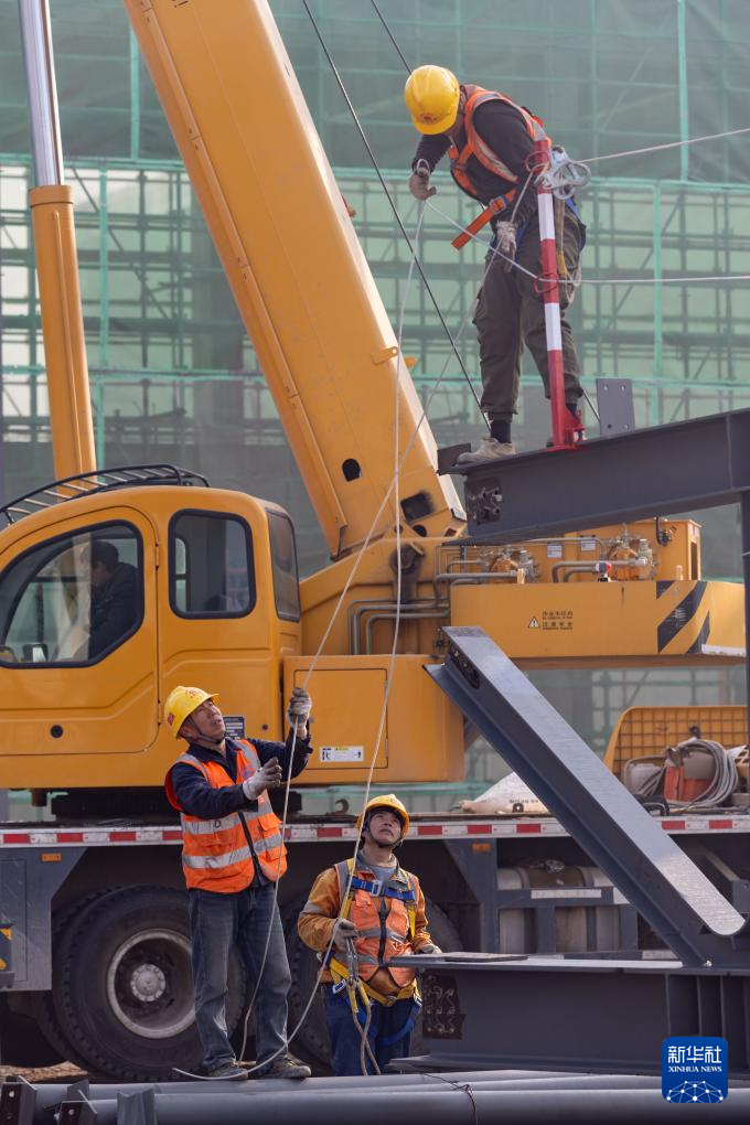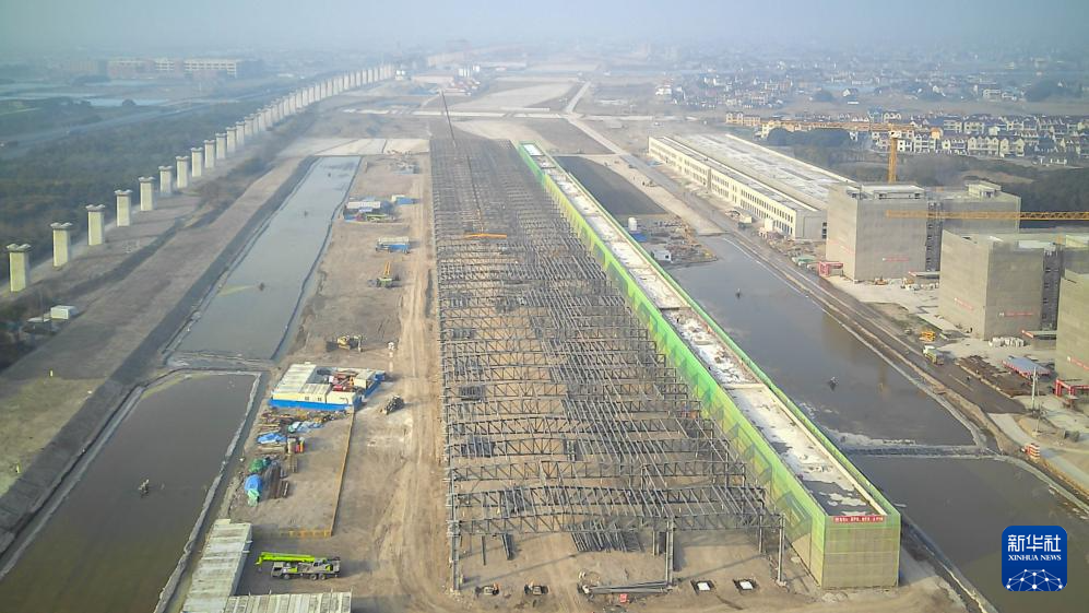 1月13日,俯瞰建设中的上海东动车运用所六线检修库(无人机照片)。